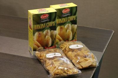 こちらは大きなバナナのバナナチップです。(箱の表裏)