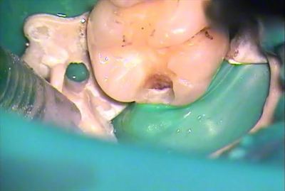 金属を除去して遠心隣接面にアプローチします。(顕微鏡直視画像)