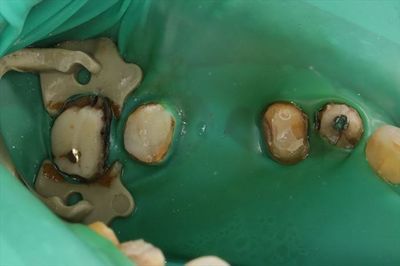 金属を切削しますのでいつものようにラバーダムを装着し粘膜を保護してスタートです。