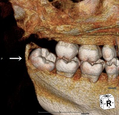 親知らずがわずかに顔を覗かせています。(半埋伏智歯)